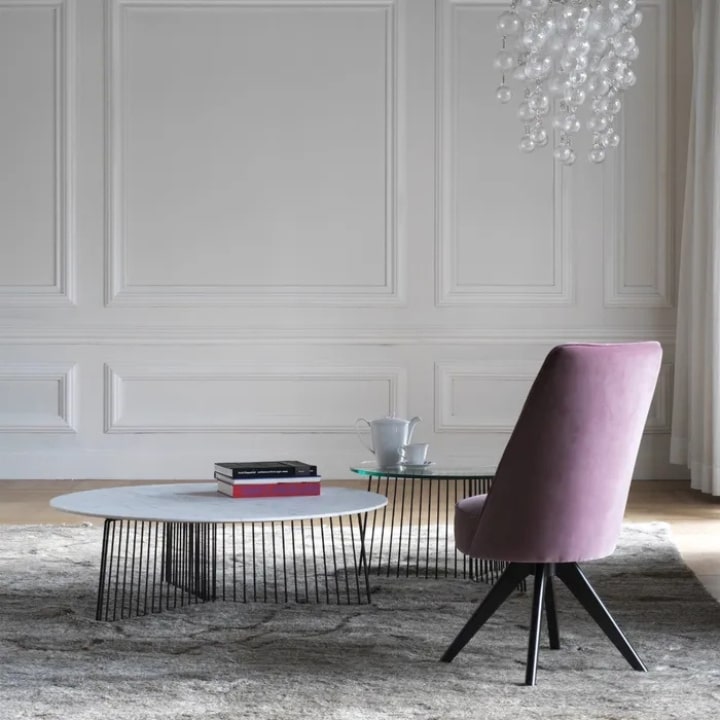 La table Anapo allie l'élégance des années 60 à un design moderne et raffiné. Son plateau en verre trempé de 15 mm repose sur une base sculpturale en acier peint en noir, composée de tubes métalliques qui apportent un effet semi-transparent dynamique. Cette table, inspirée des maisons bourgeoises, incarne la rigueur et la douceur, tout en alliant luxe et praticité. Le projet inclut également deux tables basses et un valet de nuit, offrant une collection complète pour un intérieur sophistiqué.