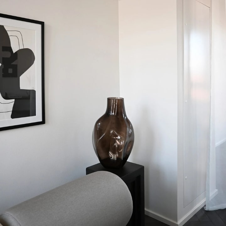 Inspiré par le mot japonais « Bakku », signifiant sac, ce vase est une œuvre d'art qui célèbre l'imperfection avec des courbes naturelles et des variations subtiles. Fabriqué selon la technique ancestrale du verre soufflé à la bouche, chaque vase est unique, présentant une forme organique qui capture la lumière et apporte une élégance raffinée à tout espace. La teinte « Forêt Fumée » apporte profondeur et sophistication, tandis que la silhouette fluide évoque une beauté intemporelle.