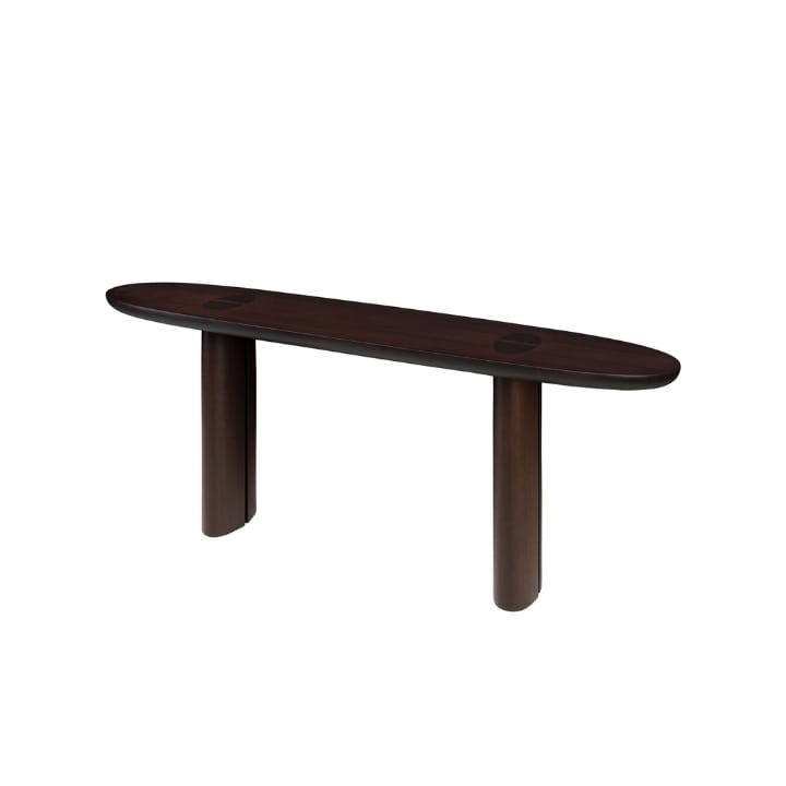 Embellissez votre intérieur avec cette superbe console de haute qualité, fabriquée en bois d'eucalyptus fumé. Son design à deux pattes et ses lignes épurées ajoutent une touche de sophistication et de chaleur à votre entrée ou à toute autre pièce de votre maison. Le placage d'eucalyptus fumé, combiné à une finition PU 2C, garantit une durabilité et un style intemporel. Parfaite pour apporter à la fois fonctionnalité et esthétique à votre intérieur.