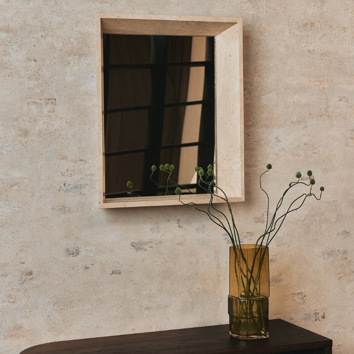 Le miroir Lancet s'inspire des étroites fenêtres à ouverture de Can Lis, réputées pour leurs jeux de lumière saisissants tout au long de la journée. Nommé d'après les fenêtres architecturales en lancette pointues, ce design rend hommage à ces formes. Fabriqué en travertin et en verre, il allie textures de pierre naturelle et reflets élégants. Avec son élégance architecturale, le miroir Lancet constitue un point focal saisissant, idéal pour les couloirs, les entrées ou les pièces à vivre.