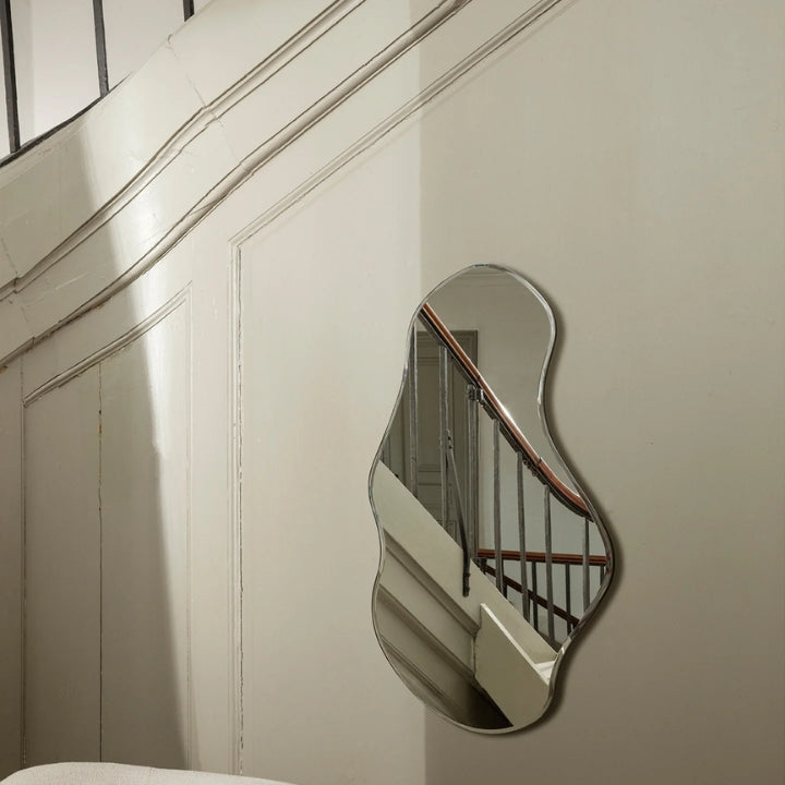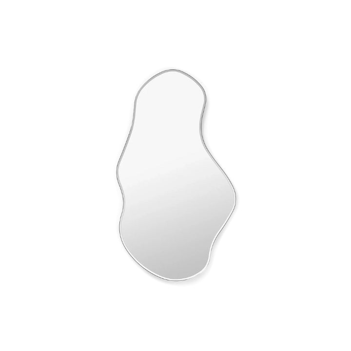 La série Pond allie forme et beauté grâce à des formes organiques, invitant des formes ouvertes et fluides à votre intérieur et transformant ce miroir fonctionnel en élément décoratif mural. Ses bords incurvés sont maintenus par un cadre métallique fin et peuvent être suspendus dans toutes les directions pour s'adapter parfaitement à votre espace. Remarque : le cadre métallique du miroir présente deux points de soudure aux points de fusion.