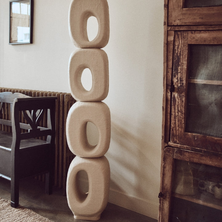 Sublimez votre intérieur avec cette saisissante sculpture en palmier tressé, une véritable pièce maîtresse qui allie art et élégance. Avec ses formes fluides et organiques et son savoir-faire artisanal, elle crée une impression de mouvement et de légèreté, attirant le regard vers le haut et ajoutant une dimension sculpturale à n'importe quelle pièce. Fabriquée en fibres de palmier naturelles, elle offre un mélange harmonieux de textures et de formes, ce qui en fait une pièce maîtresse idéale pour les amateurs de design raffiné et inspiré de la nature.