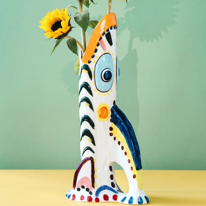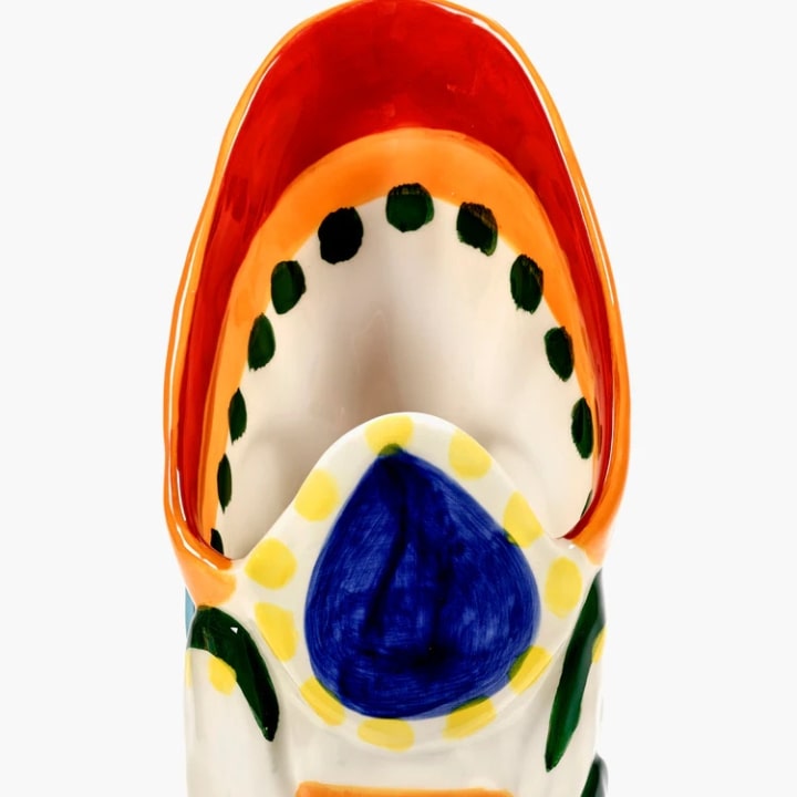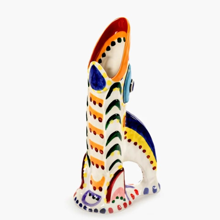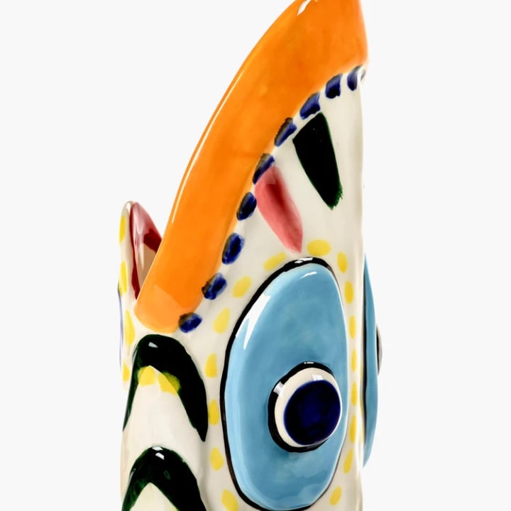 Le vase de Sicile conçu par Bisignano est une interprétation originale des légendes ancestrales, alliant un design ludique, expressif et richement coloré. Chaque pièce, peinte à la main, reflète la passion et les couleurs vibrantes de la Sicile, mais ne garantit pas l’étanchéité.